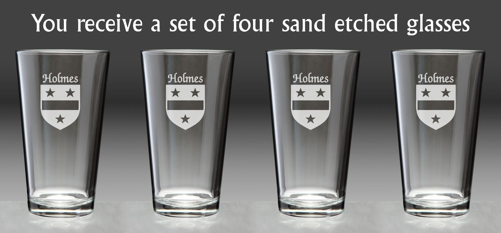 Holmes Irish Coat of Arms Pint Glasses - Set of 4 (Sand Etched)