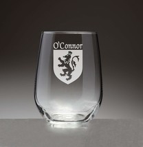 Product description: OConnor(Kerry) Irish Coat of Arms Stemless Wine Glass Set - Set of 4 (Sand Etched). People choose stemless wine glasses for many reasons. Some love the way it provides a handhold to look, swirl, smell and taste fine wine. Others appreciate the way it looks on the table. This new shape in wineglasses is growing in popularity. Add your authentic Irish name and coat of arms, finely etched on each glass, and it becomes a truly unique and modern heirloom. For your most special occasions, or everyday weekday dinners, choose this durable, well-balanced and elegant wine glass, suitable for white or red. Each Irish coat of arms wine glass is permanently and professionaly sand-etched with your surname and family crest. Choose from over 1000 available coat of arms. Dishwasher and microwave safe. Authentic Irish Family Coat of Arm. Over 25 years of Heraldry Research. Set of 4 Irish Coat of Arms Stemless wine Glasses. High quality sand etching. Each glass holds 15 1/2 ounces of your favorite beverage.