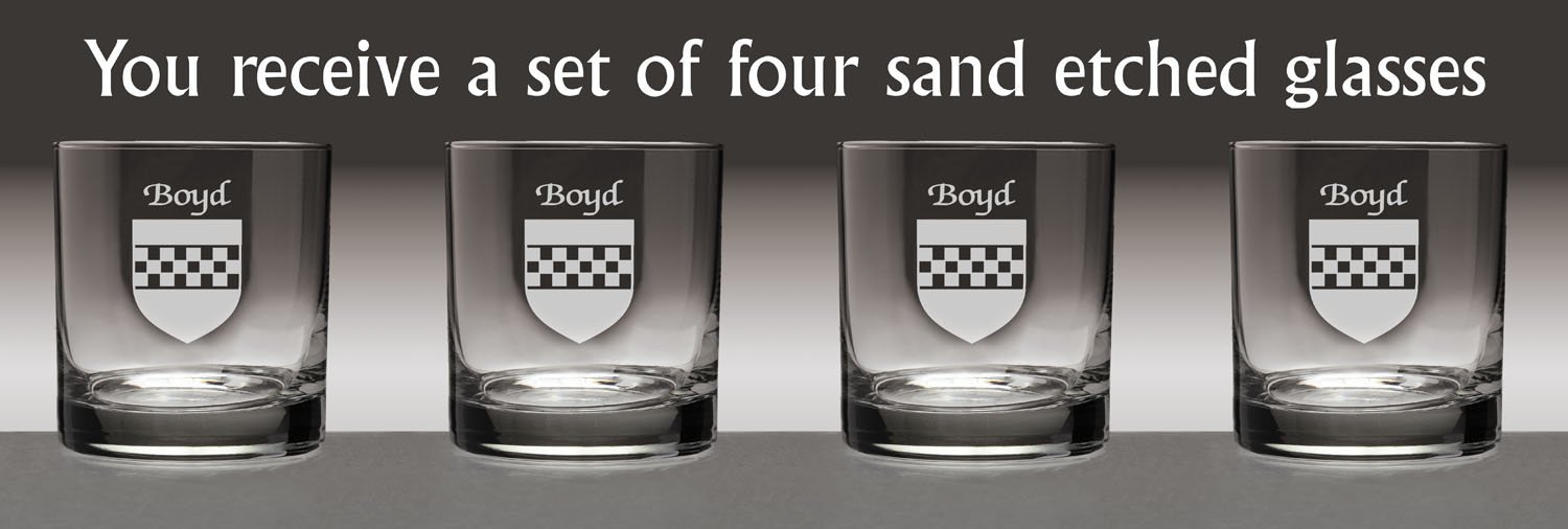 Boyd Irish Coat of Arms Tumbler Glasses - Set of 4 (Sand Etched) |