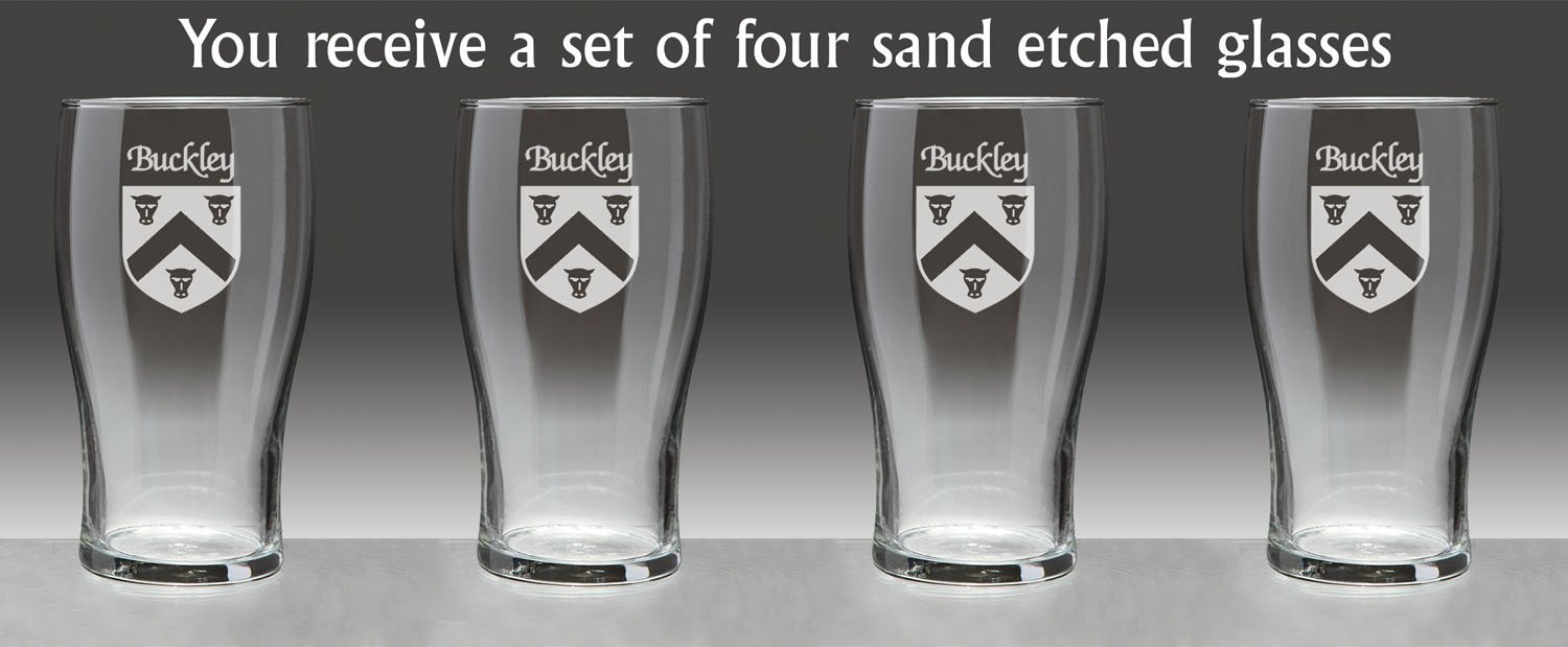 Buckley Irish Coat of Arms Tavern Glasses - Set of 4 (Sand Etched) |