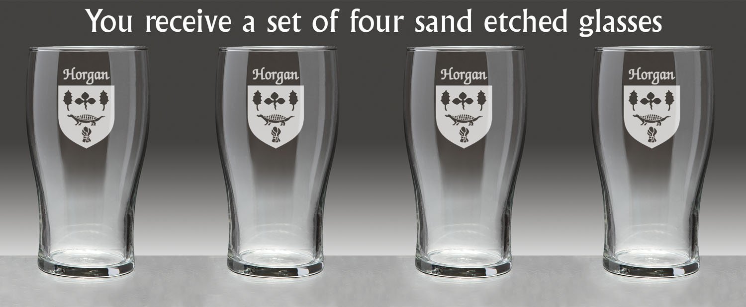 Horgan Irish Coat of Arms Tavern Glasses - Set of 4 (Sand Etched) |