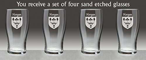 Product description: Horgan Irish Coat of Arms Tavern GlassesDanger: Curves ahead! From her hand-sized base to the gentle swell of her keel, this style of glassware is an age-old tradition on oaken bars all over the Celtic isles because of the wonderful balance, weight and durability she brings to the table.An official standard Irish pint at 20 oz., the Coat of Arms Tavern Glass features your permanently sand-etched Irish family coat of arms. Microwave and dishwasher safe.Choose from over 1200 available family Irish crests. Authentic Irish Family Coat of Arms Over 25 years of Heraldry Research Set of 4 Irish Coat of Arms Tavern Glasses (Sand Etched) High quality sand etchingEach glass holds 20 ounces of your favorite beverage