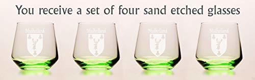 Mulholland Irish Coat of Arms Green Tumbler Glasses - Set of 4 (Sand Etched)