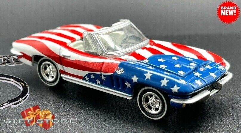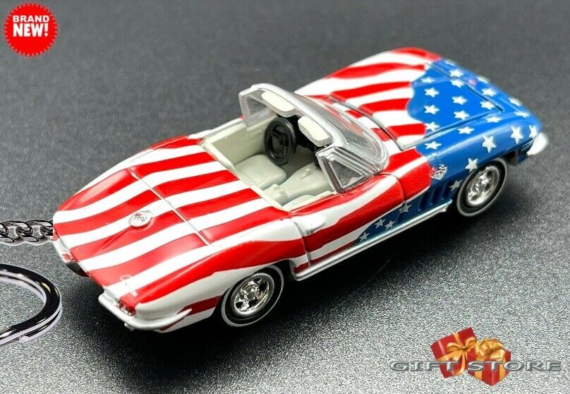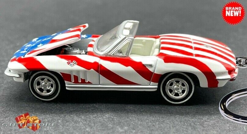 RARE KEYCHAIN USA FLAG 1964~65~66~67 CHEVY CORVETTE C2 CUSTOM Ltd GREAT GIFT