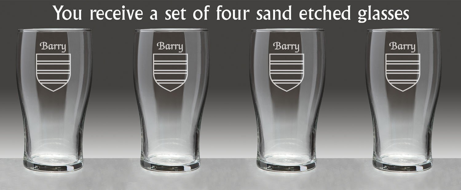 Barry Irish Coat of Arms Tavern Glasses - Set of 4 (Sand Etched) |