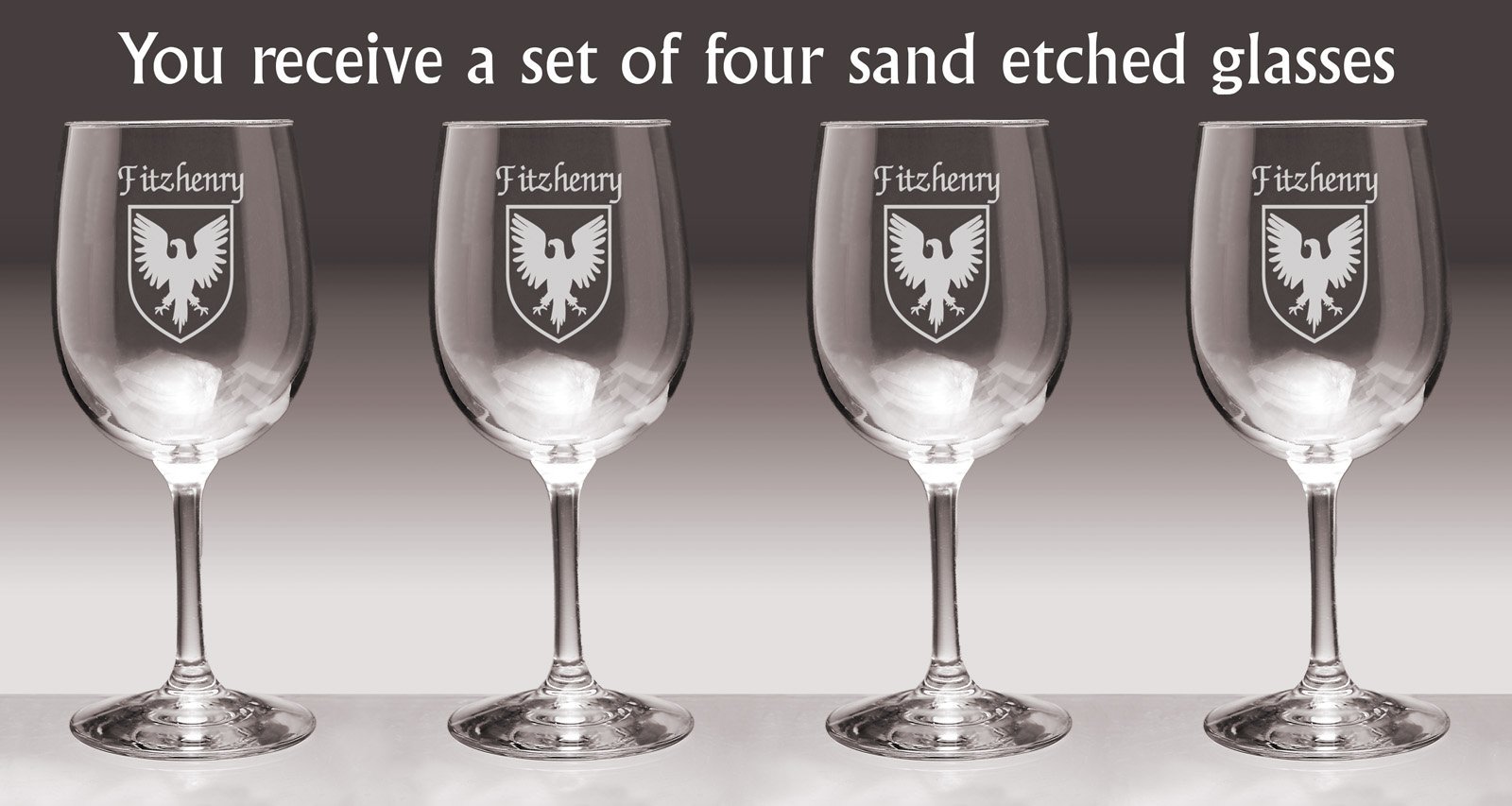 Fitzhenry Irish Coat of Arms Wine Glasses - Set of 4 (Sand Etched) |