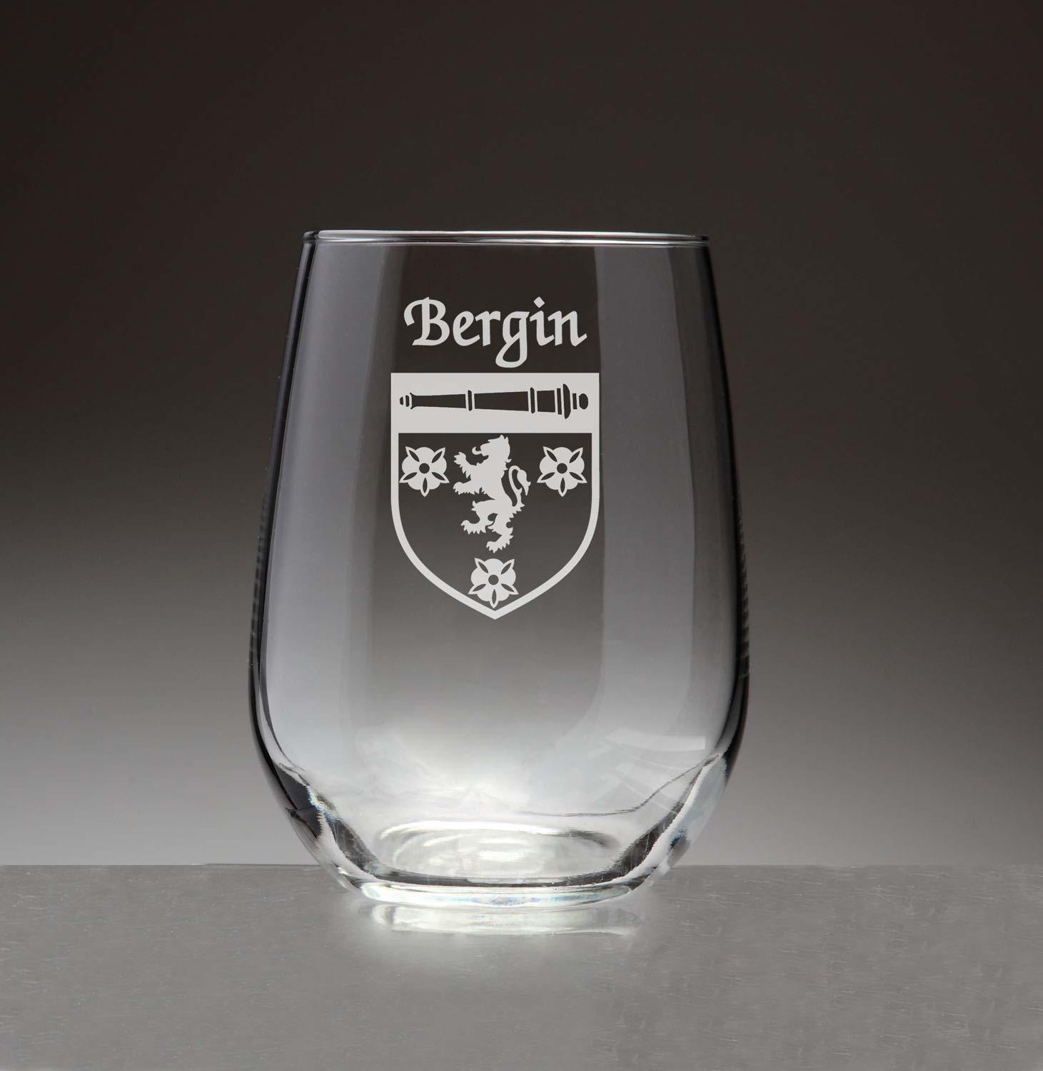 Bergin Irish Coat of Arms Stemless Wine Glasses (Sand Etched) |