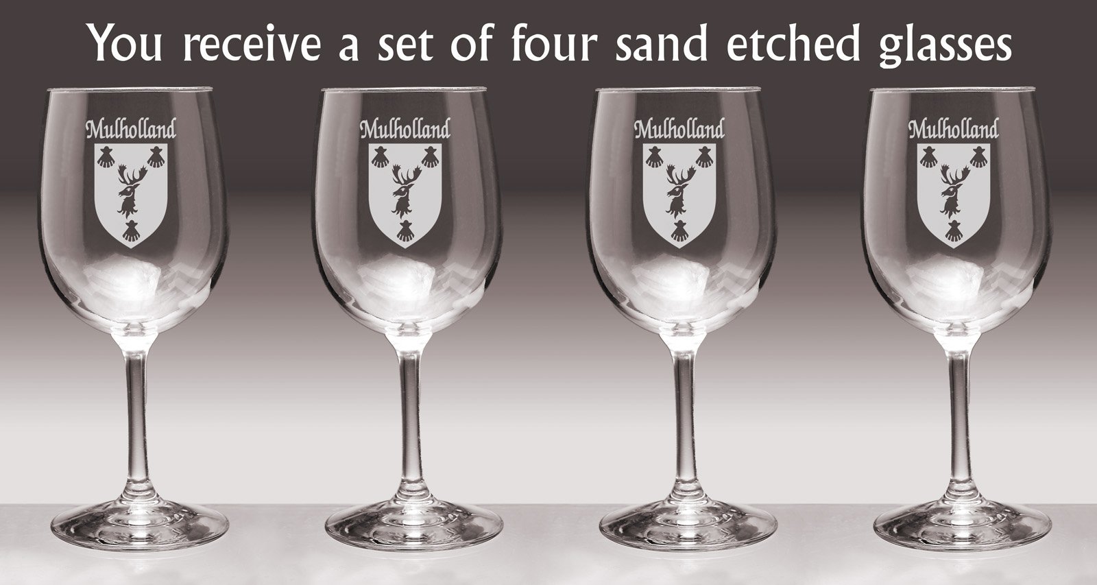 Mulholland Irish Coat of Arms Wine Glasses - Set of 4 (Sand Etched) |