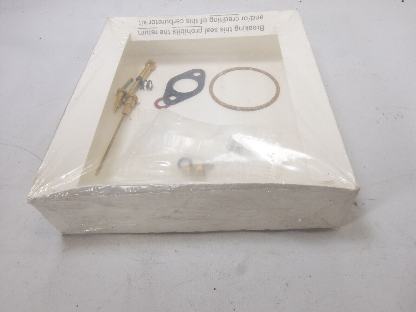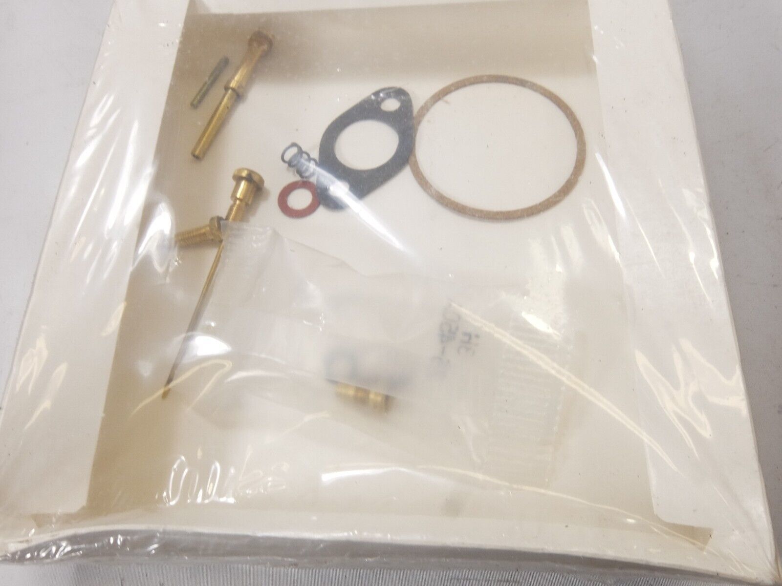 This is a vintage carburetor kit made by Techlit Co. The kit was still sealed in the original box. The box is sealed in cellophane wrap. The box and plastic wrap are a bit dirty from being in storage.