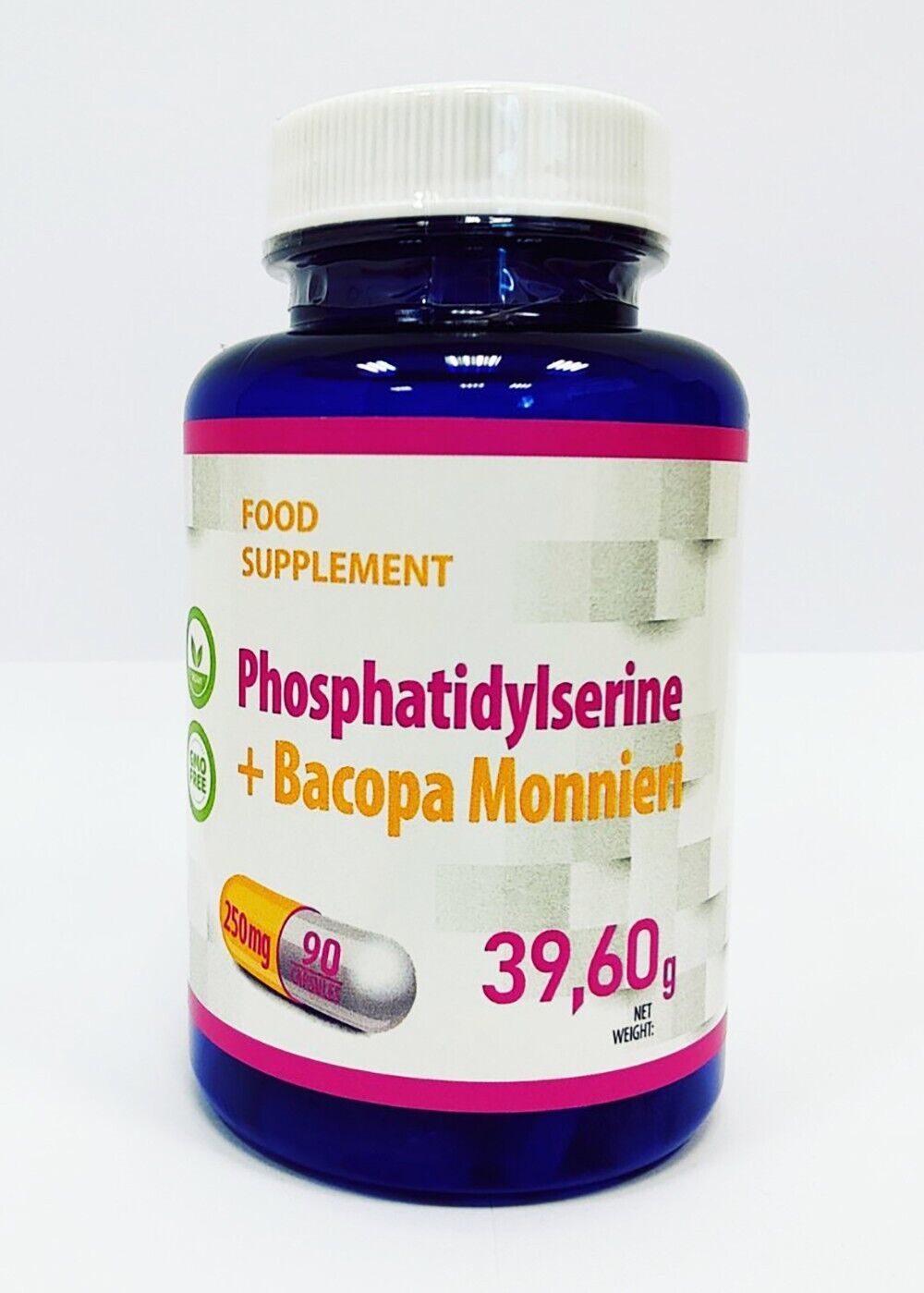 The recommended daily portion (1 capsules), contains 125mg of Phosphatidylserine and 125mg Bacopa Monnieri.