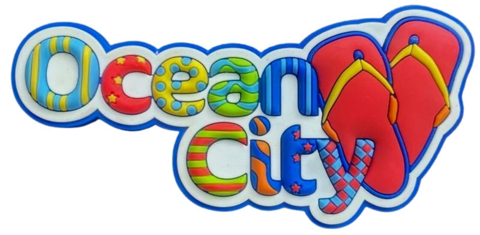 Ocean City with Flip Flops Block Style Fridge Magnet