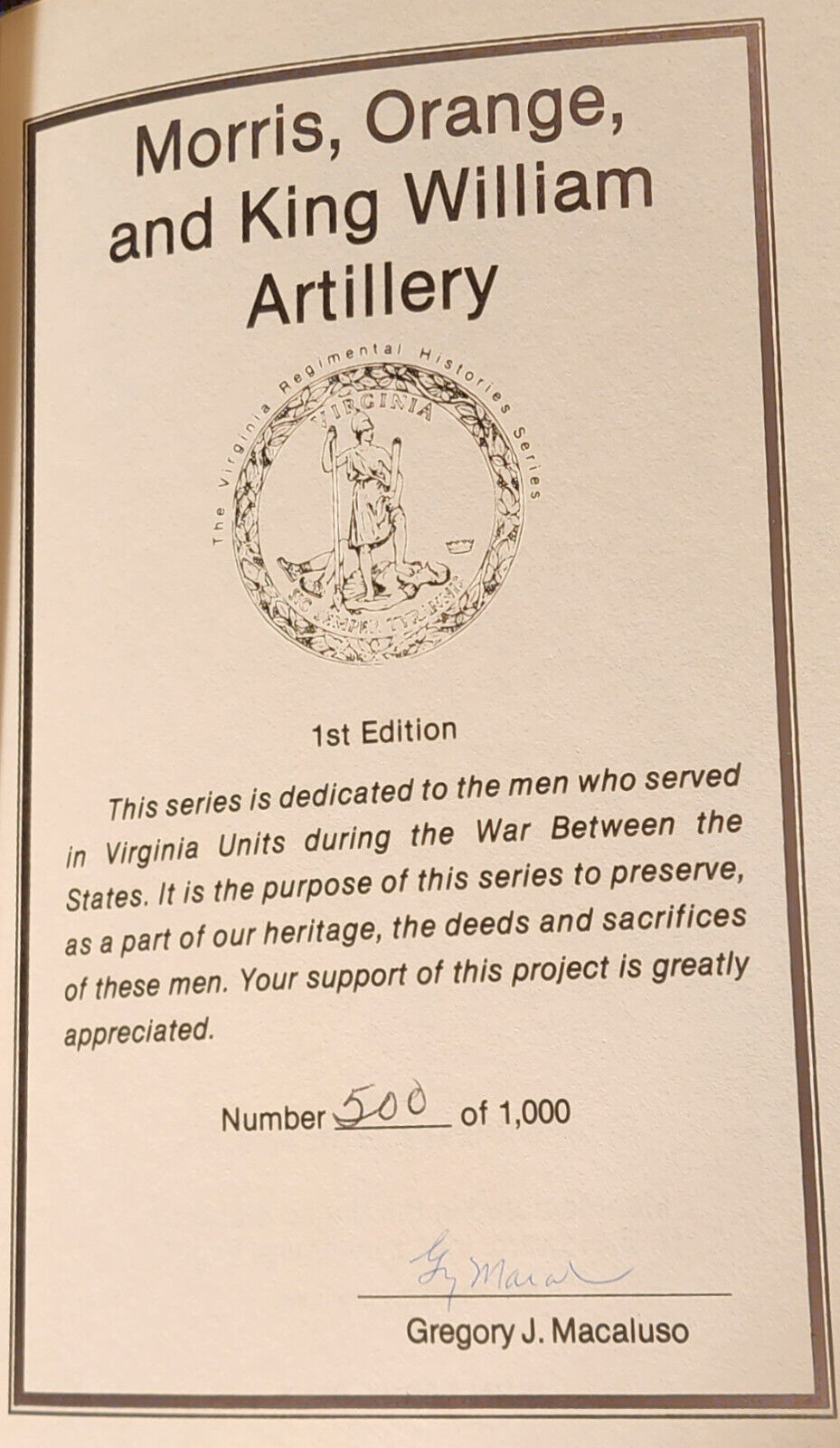 MORRIS, ORANGE, AND KING WILLIAM ARTILLERY - 1991 1st Lmt. ed., signed by author