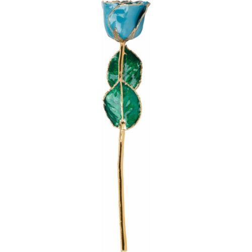 24k Gold Dipped Aquamarine Lacquer Real Rose Valentine's Day Holiday Gift