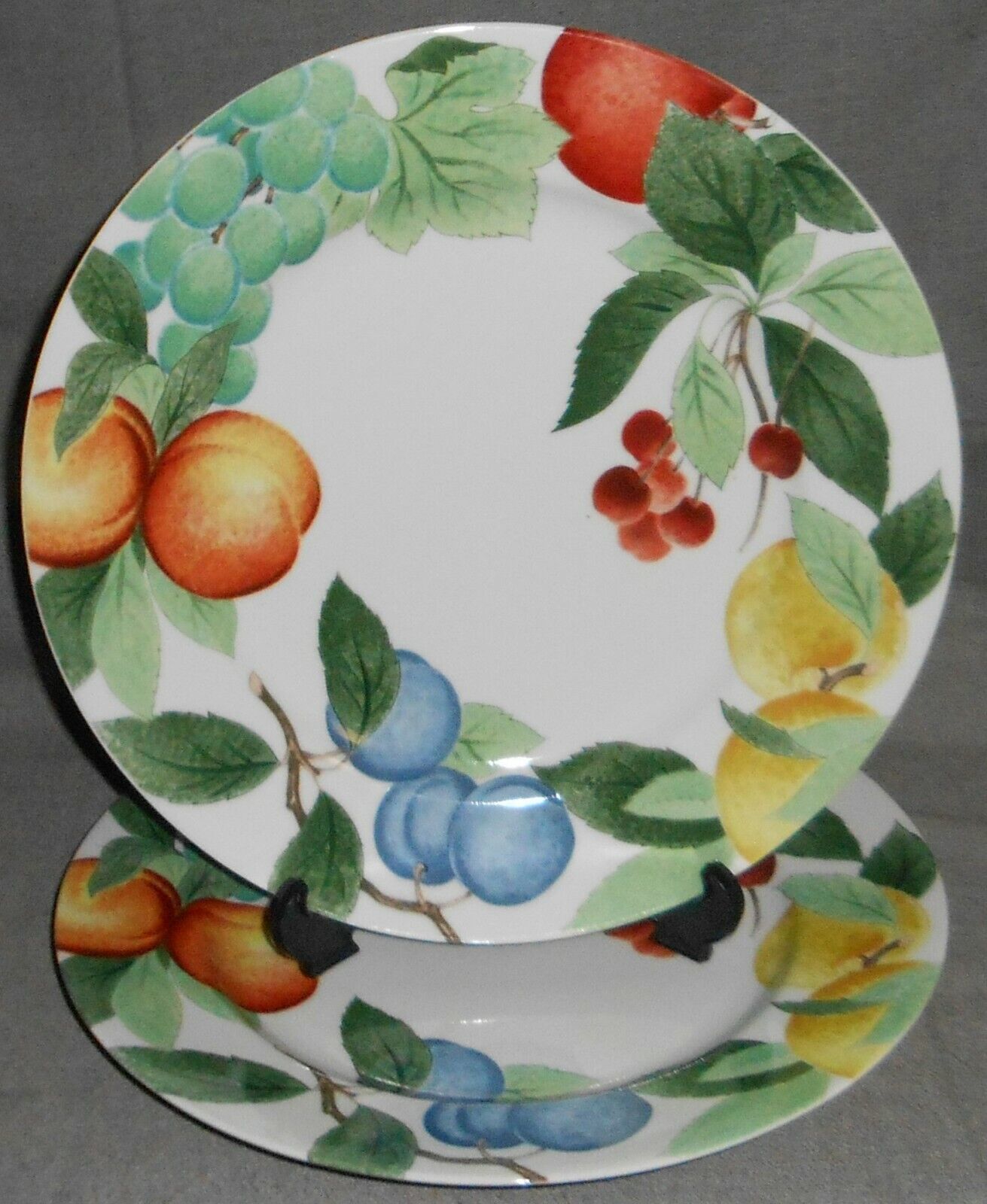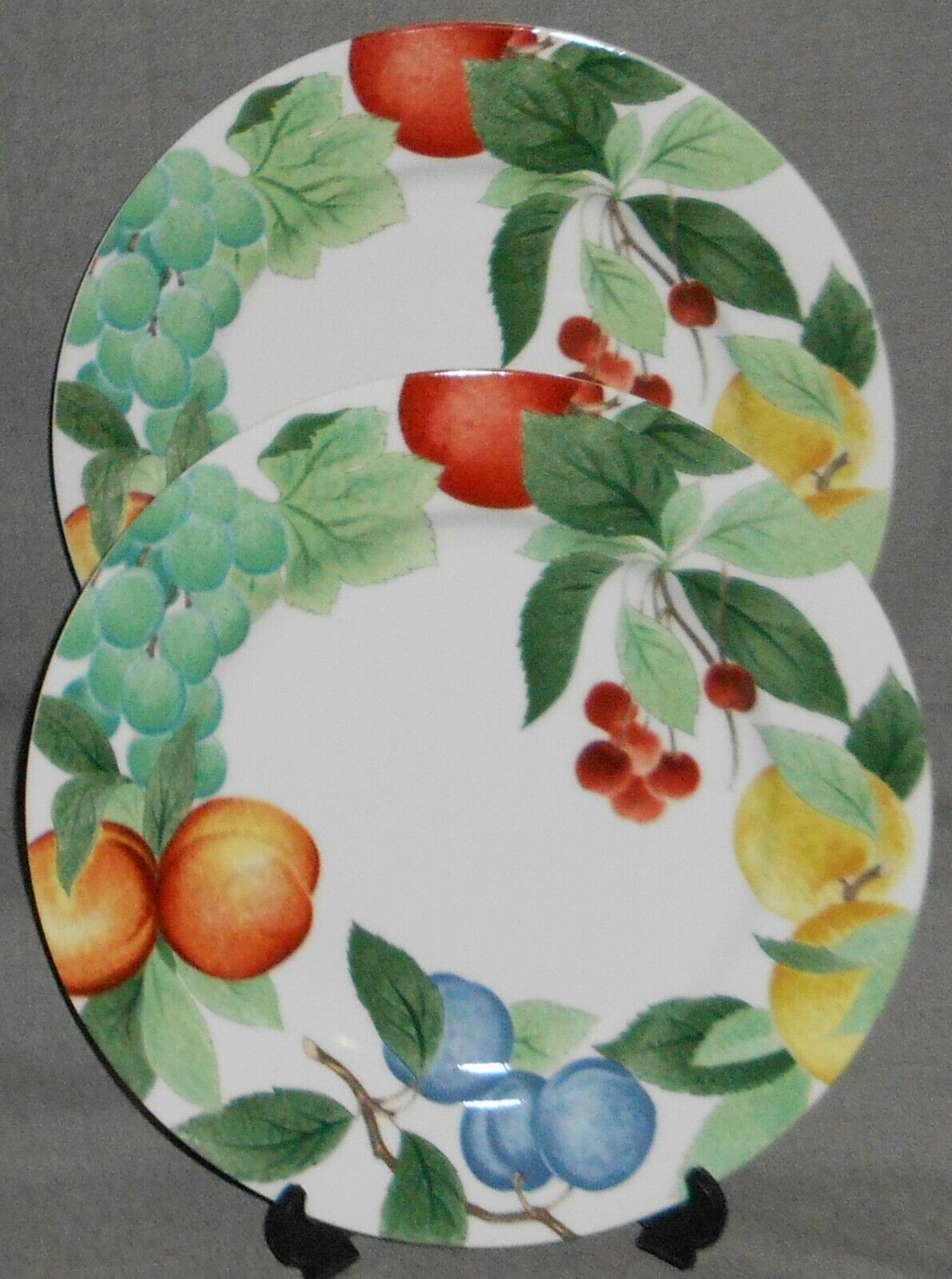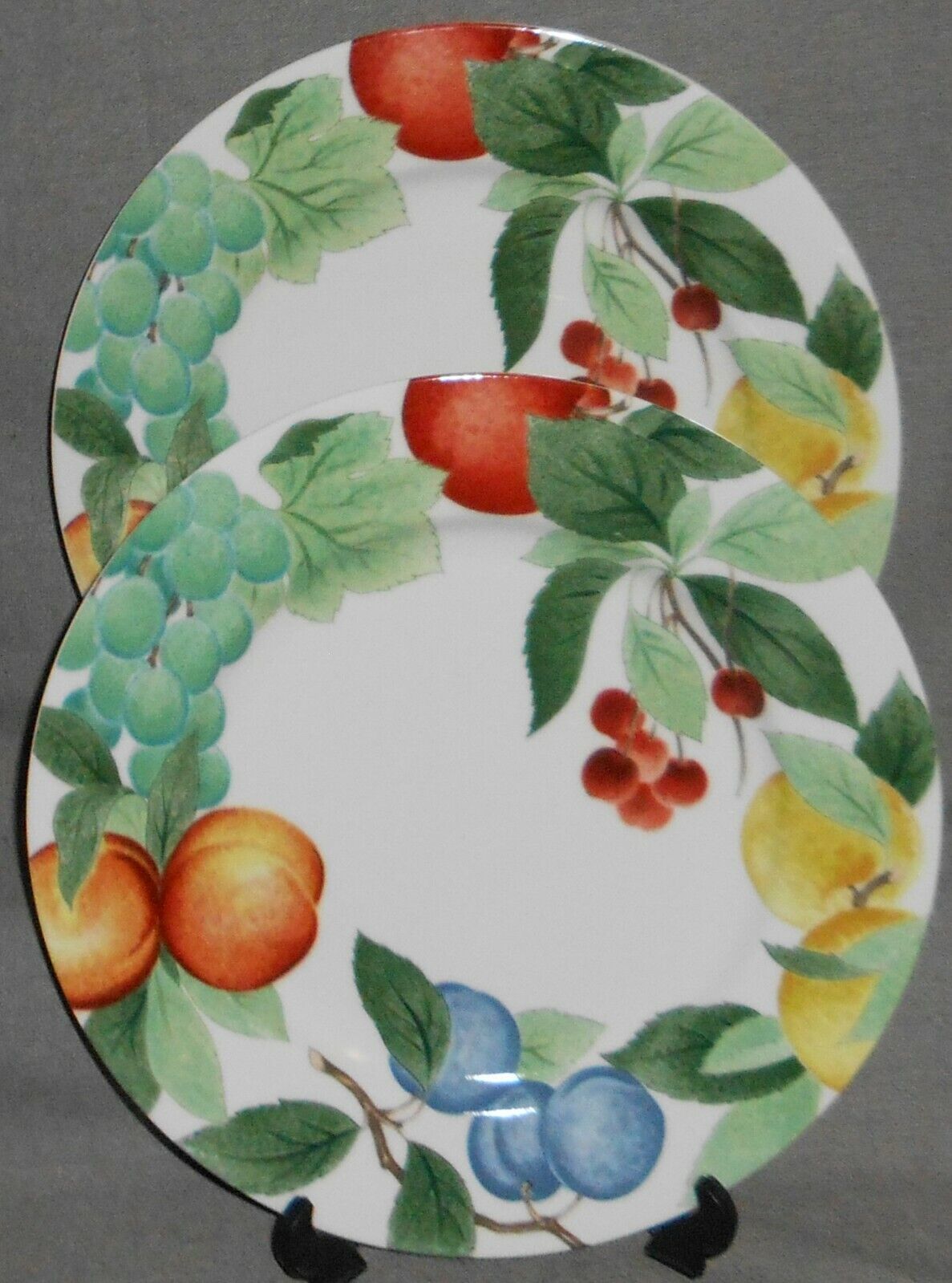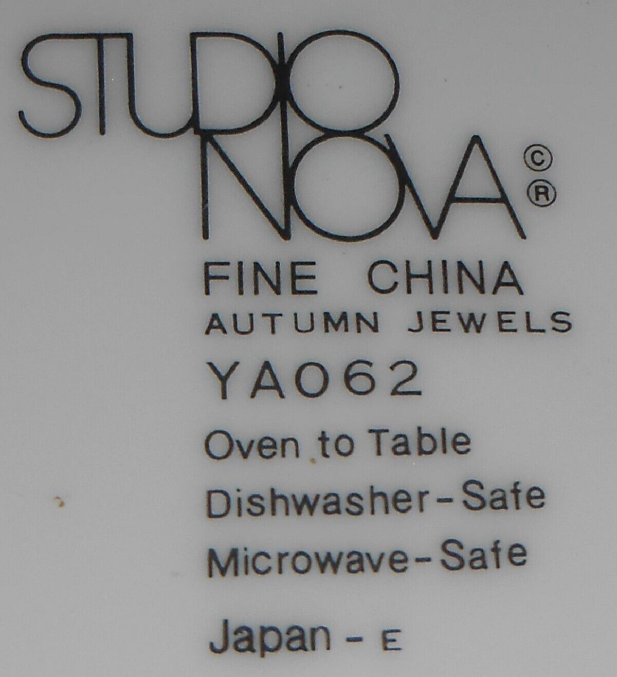 This is a Set of (2) 13" Porcelain Chop Plates or Platters from Studio Nova in the Autumn Jewels Pattern - Made in Japan. They are in good pre-owned condition with no chips or cracks.