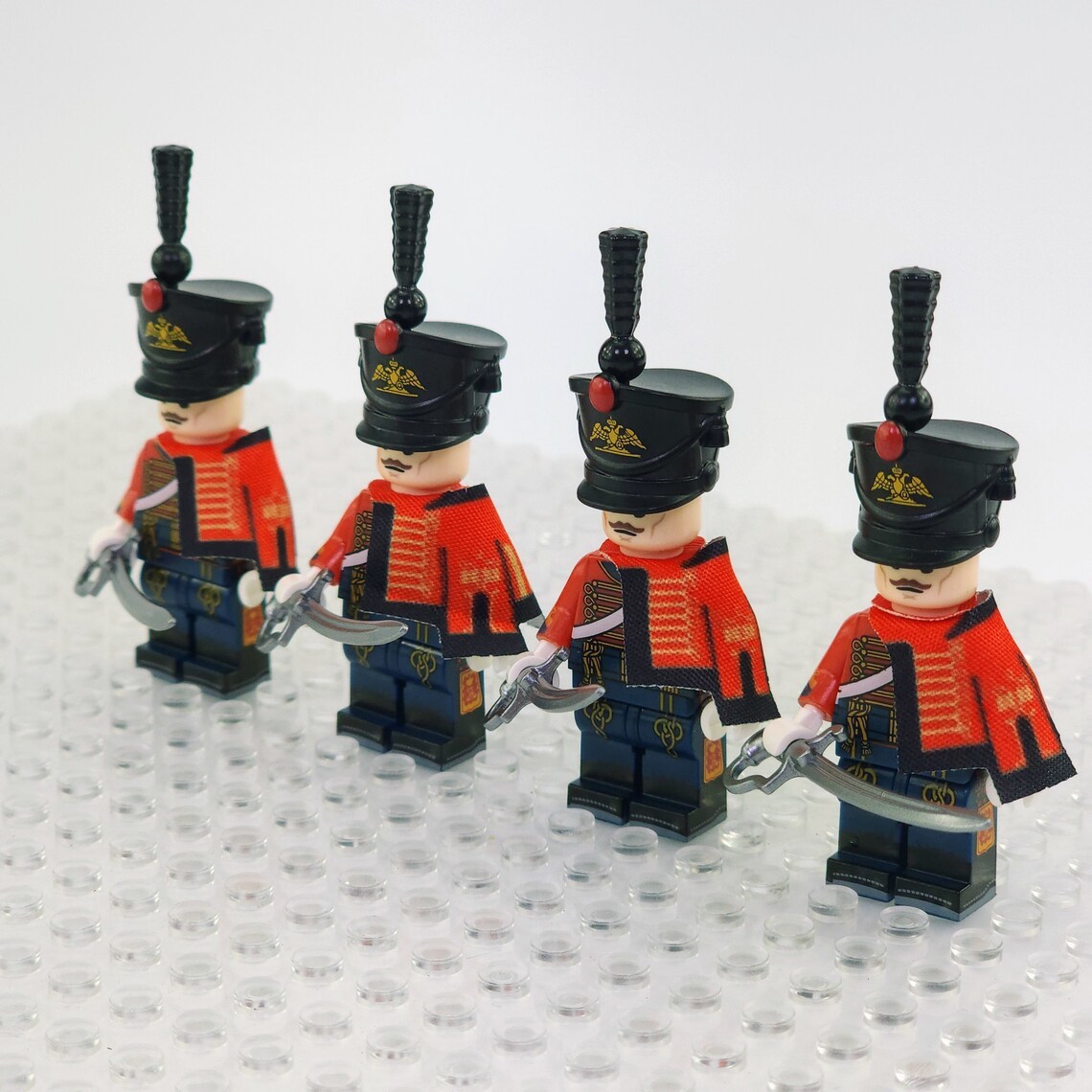 4pcs Napoleonic Wars Russian Guard Hussar Russian Soldiers Minifigures