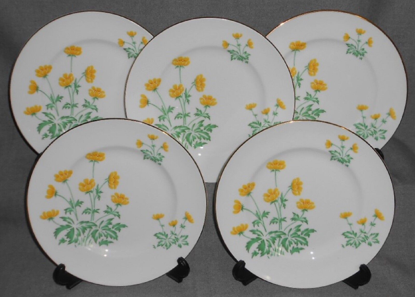 Set (5) Crown Sterling SURREY BUTTERCUPS PATTERN Bone China SALAD PLATES England