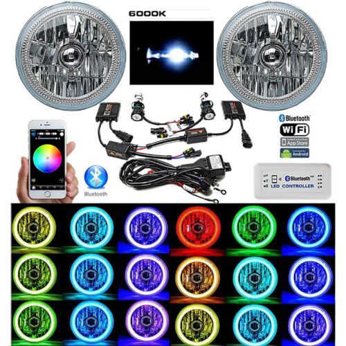 5-3/4 Bluetooth RGB SMD LED Color Change Halo Angel Eye 6K HID Headlights Pair