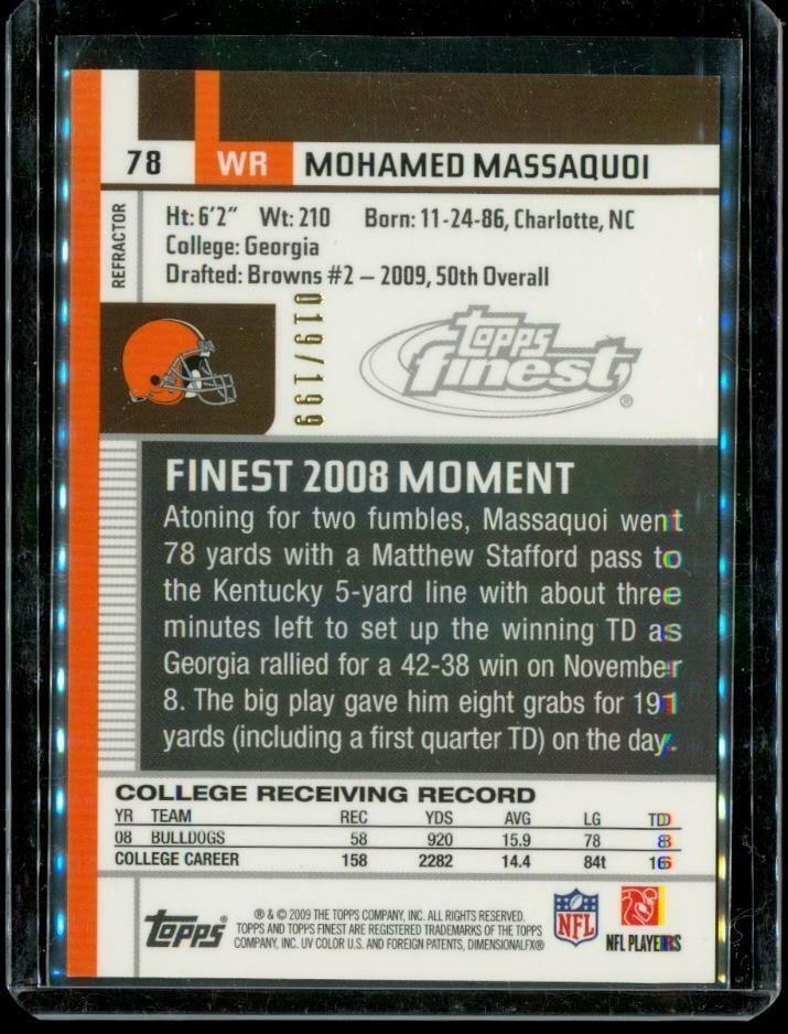 2009 TOPPS FINEST RC Refractor Football Card #78 MOHAMED MASSAQUOI Browns LE
