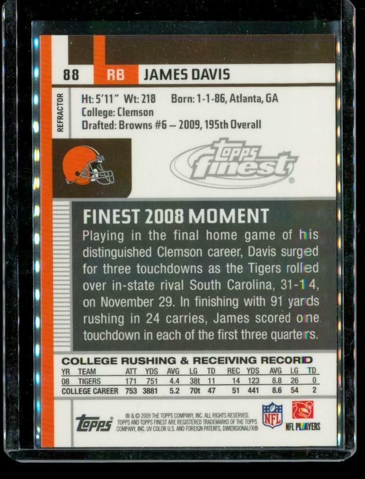 2009 TOPPS FINEST RC Refractor Football Card #88 JAMES DAVIS Cleveland Browns