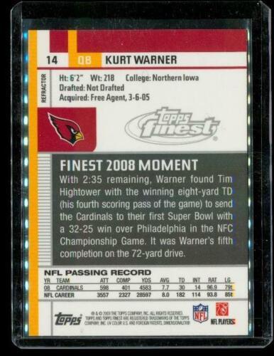 2009 TOPPS FINEST Refractor Football Card #14 KURT WARNER Arizona Cardinals