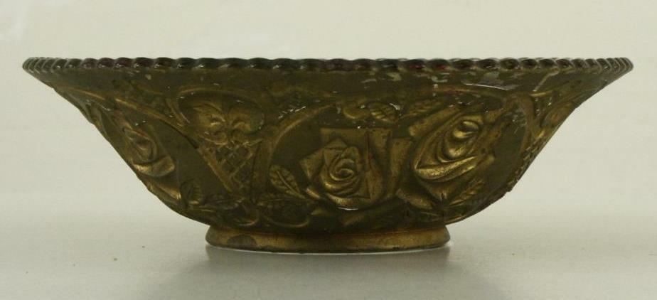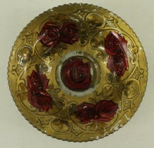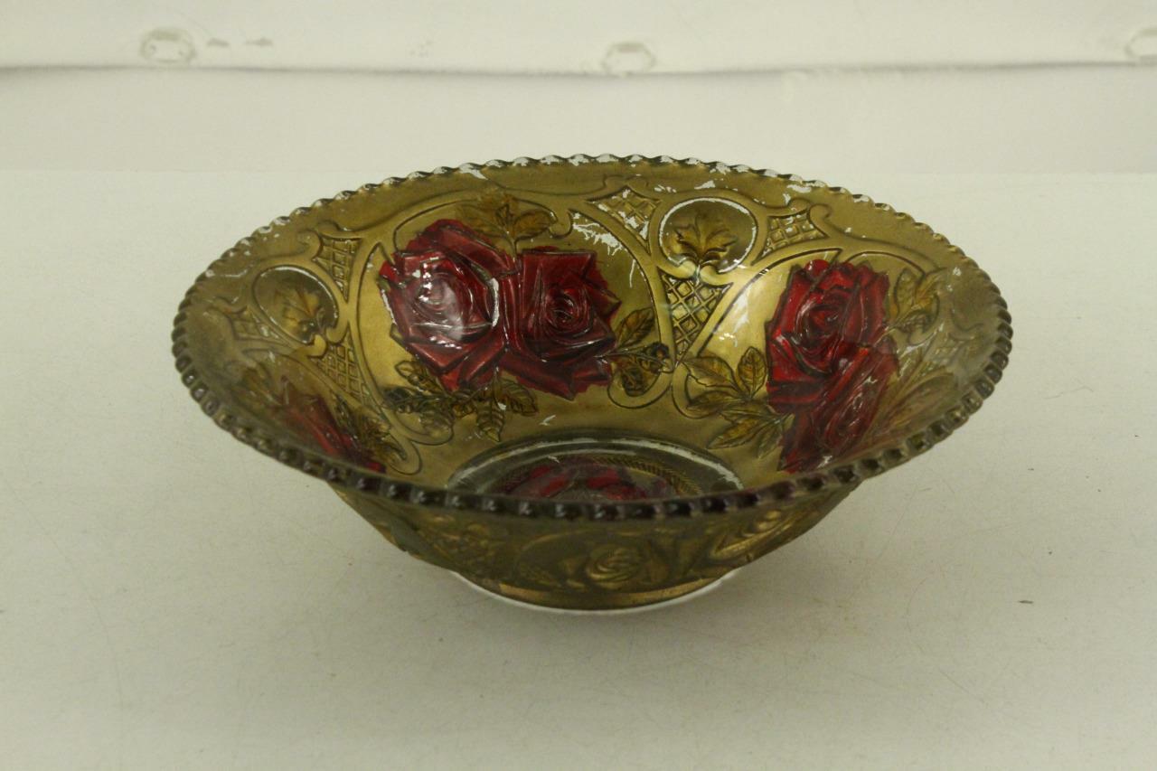Vintage GOOFUS Pressed Painted GLASS EAPG Double Rose Fruit Serving Bowl 9-1/8" - some loss to the paint. No smoke or pet odor. Early 1900's. No chips or cracks.