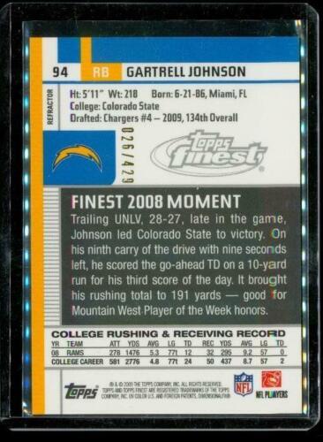 2009 TOPPS FINEST RC Refractor Football Card #94 GARTRELL JOHNSON Chargers LE