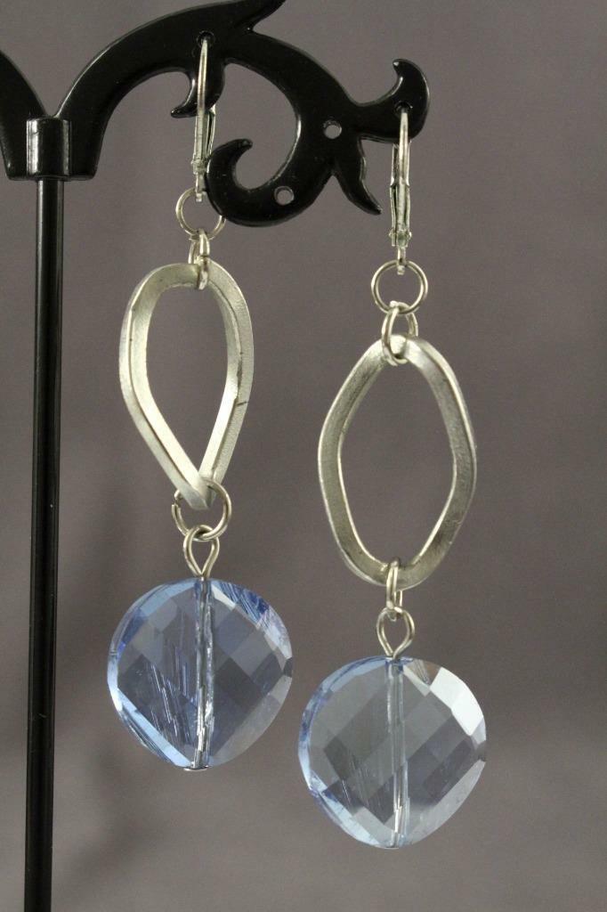 Modern Costume Jewelry Blue Faceted Crystal Silver Tone Dangle Pierced Earrings
