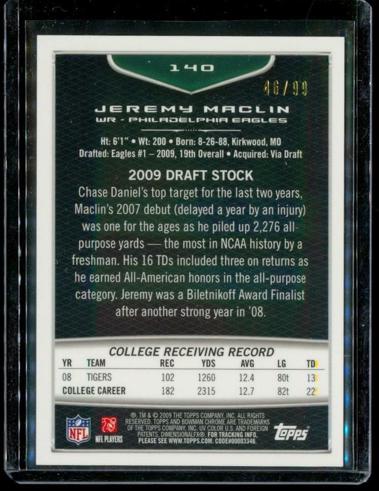 2009 TOPPS BOWMAN CHROME RC Football Card #140 JEREMY MACLIN Philadelphia Eagles Limited Edition 46/99