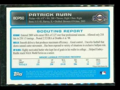 2009 TOPPS 1ST BOWMAN CHROME Baseball Card BCP50 PATRICK RYAN Milwaukee Brewers