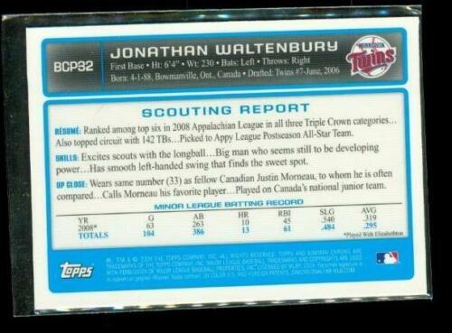 2009 TOPPS 1ST BOWMAN CHROME Baseball Card BCP32 JONATHAN WALTENBURY Twins