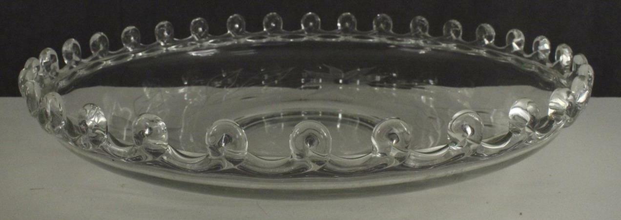 Vintage Heisey Crystal Elegant Glass Lariat Pattern 12.5" Wide Flower Etch Gardenia Bowl. No chips or cracks. 8 petal flower etch.