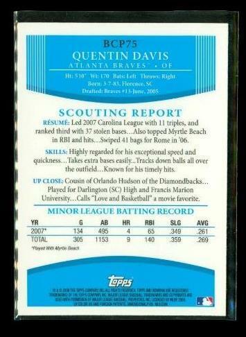2008 TOPPS 1ST BOWMAN CHROME Baseball Card BCP75 QUENTIN DAVIS Atlanta Braves