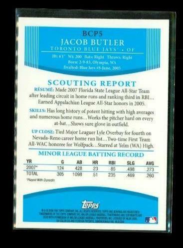 2008 TOPPS 1ST BOWMAN CHROME Baseball Card BCP5 JACOB BUTLER Toronto Blue Jays