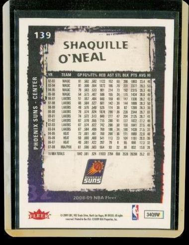 2008-09 FLEER Basketball Trading Card #139 SHAQUILLE O'NEAL Phoenix Suns