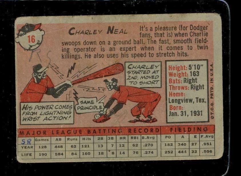 Vintage BASEBALL Trading Card TOPPS 1958 #16 CHARLEY NEAL LA Dodgers Shortstop
