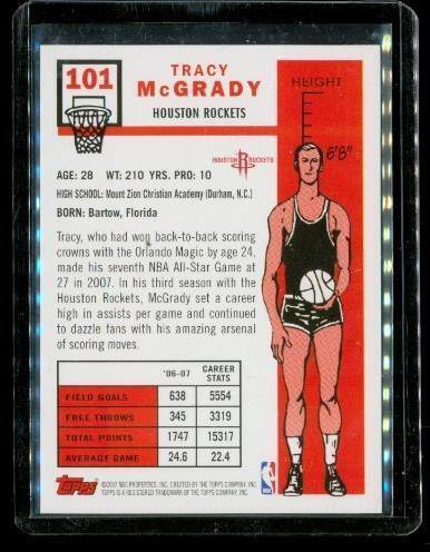 2007 TOPPS 50TH ANNIVERSARY Basketball Trading Card #101 TRACY MCGRADY Houston Rockets