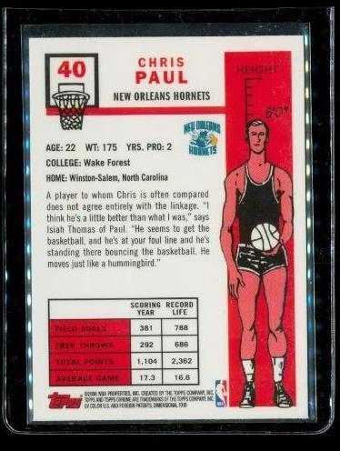 2007-08 TOPPS CHROME Basketball 57-58 Card #40 CHRIS PAUL New Orleans Hornets