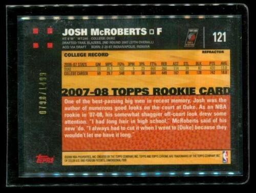 2007-08 TOPPS CHROME Rookie Refractor Basketball Card #121 JOSH MCROBERTS Portland Trail Blazers Limited Editon 0798/1499