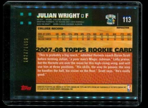 2007-08 TOPPS CHROME Refractor Basketball Card #113 JULIAN WRIGHT NO / OK Hornets