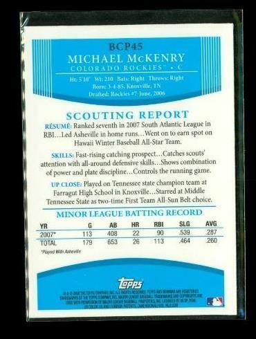 2008 TOPPS 1ST BOWMAN CHROME Baseball Card BCP45 MICHAEL MCKENRY Colorado Rockies