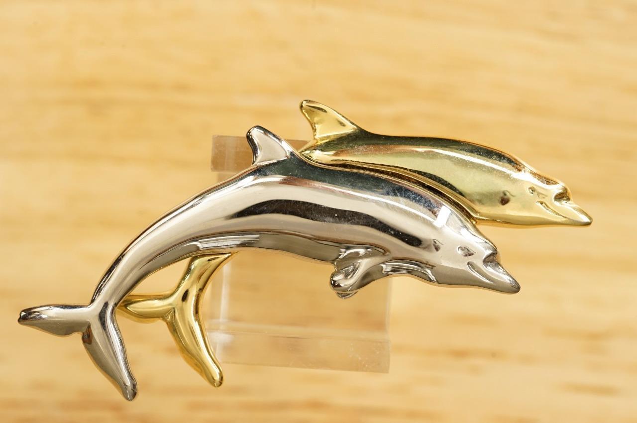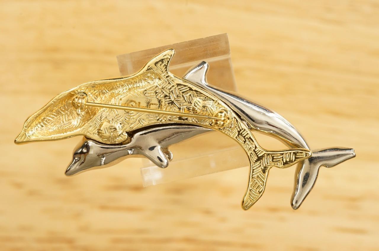 Vintage Costume Jewelry Liz Claiborne Silver Gold Swimming Dolphins Brooch Pin