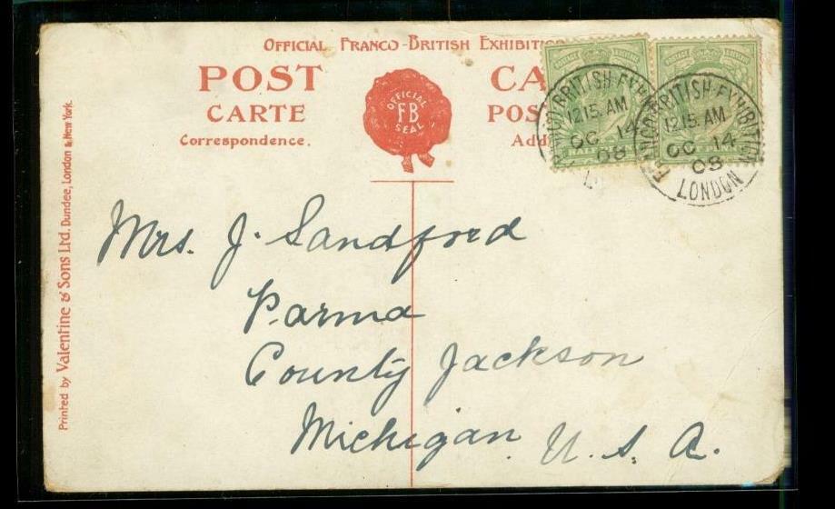 Vintage Valentine Postcard Franco British Exhibition London 1908 Postal History