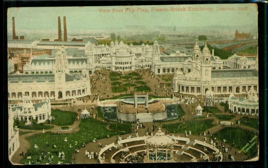 Vintage Valentine Postcard Franco British Exhibition London 1908 Postal History - View from Flip Flap.