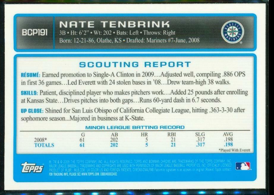 2009 Baseball Card Bowman Chrome Prospects BCP191 NATE TENBRINK Seattle Mariners