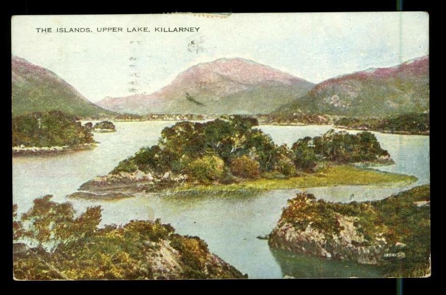 Vintage Valentine Art Postcard The Islands Upper Lake Killarney Ireland Postal History - Greece to USA, Greek language card.