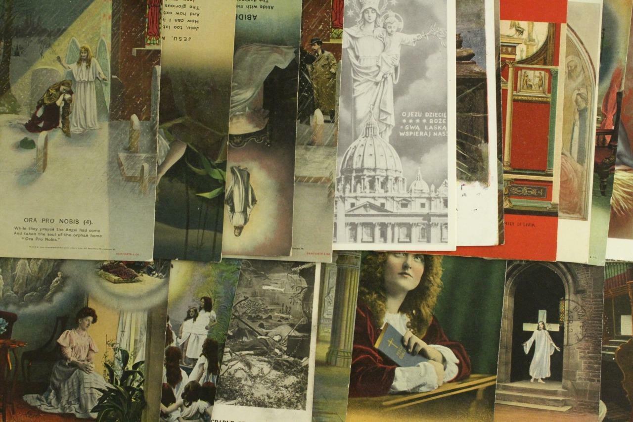 Vintage Lot Holiday Postcards Religious Greeting Hymns Poetry Catholic Christian. Good variety. Overall fair to good condition. Early cancels.