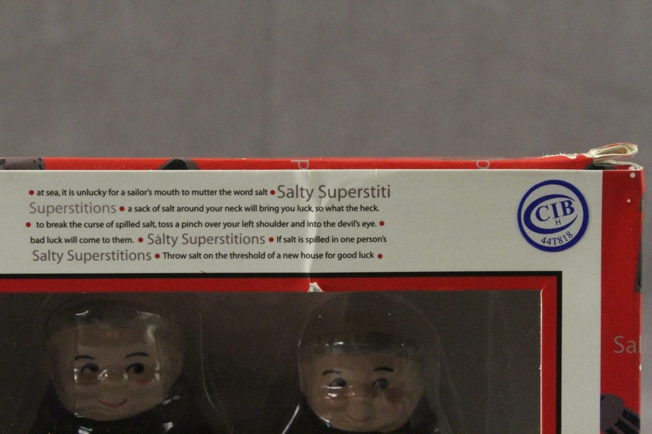 MODERN NOS Salt Pepper Shakers Friar Monk in Robes Figurines Salty Superstitions - One Hundred 80 Degrees. They stand 2.25" and 2.5" tall. New in the original box.