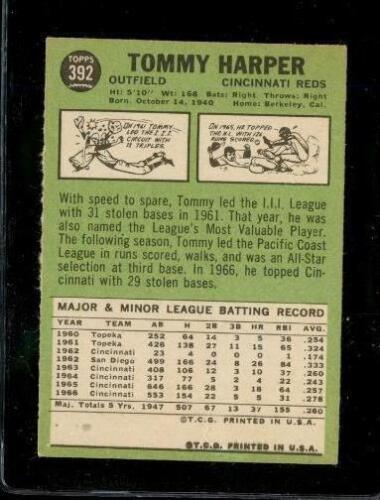 Vintage 1967 TOPPS Baseball Trading Card #392 TOMMY HARPER Cicninnati Reds