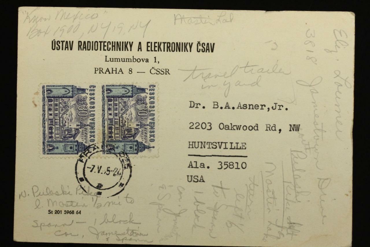Vintage Postal History Postcard CSSR Czechoslovakia USA 1965 Radio Engineering