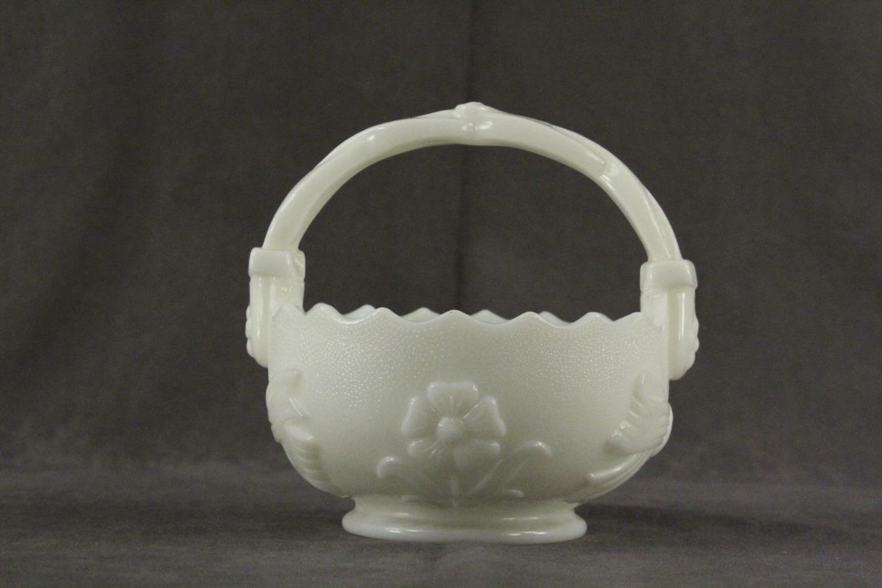 Vintage IMPERIAL Milk Glass Flower Floral Ribbon Textured Stipple Basket